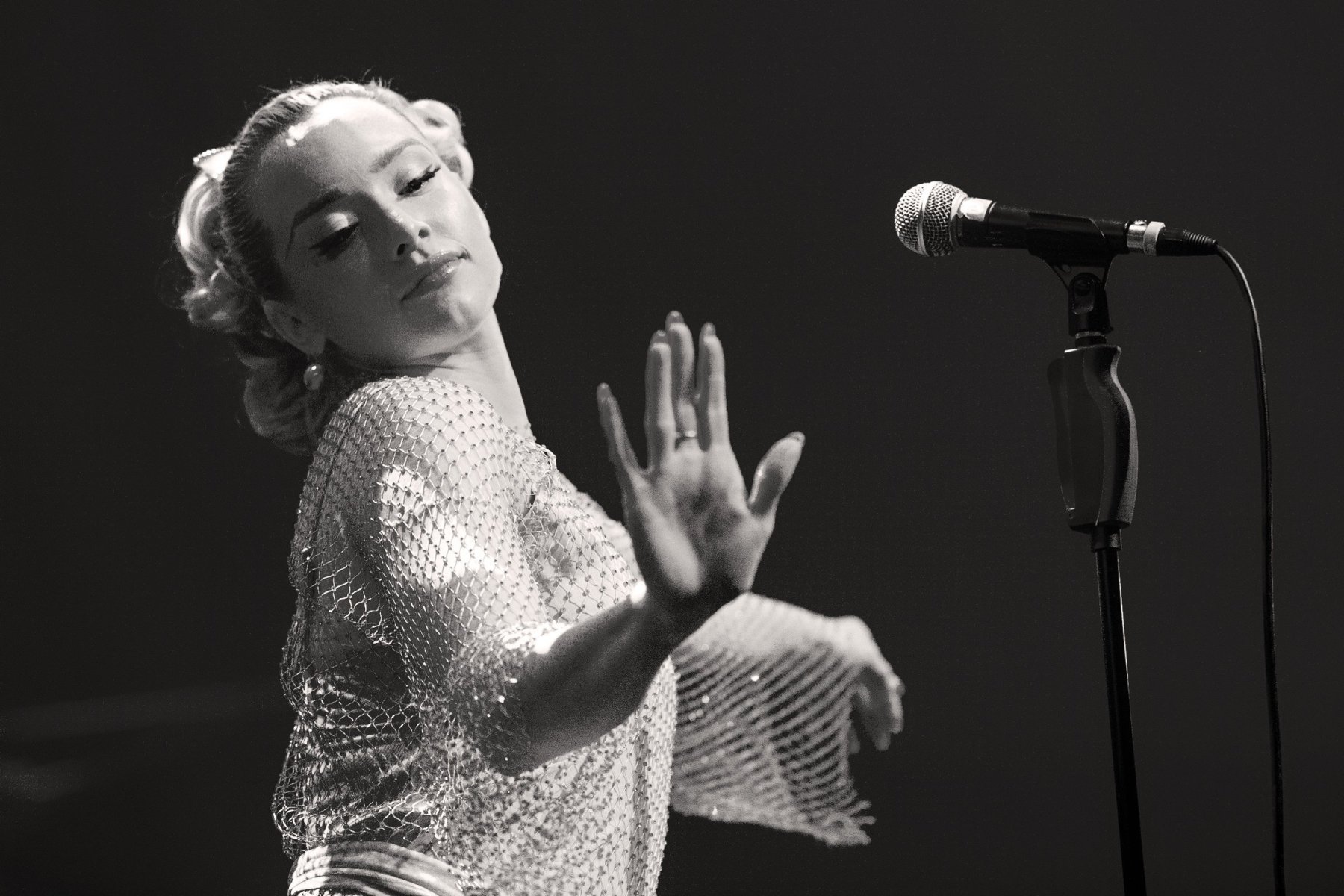 En de sierlijke bewegingen en stem van Addie Hamilton.